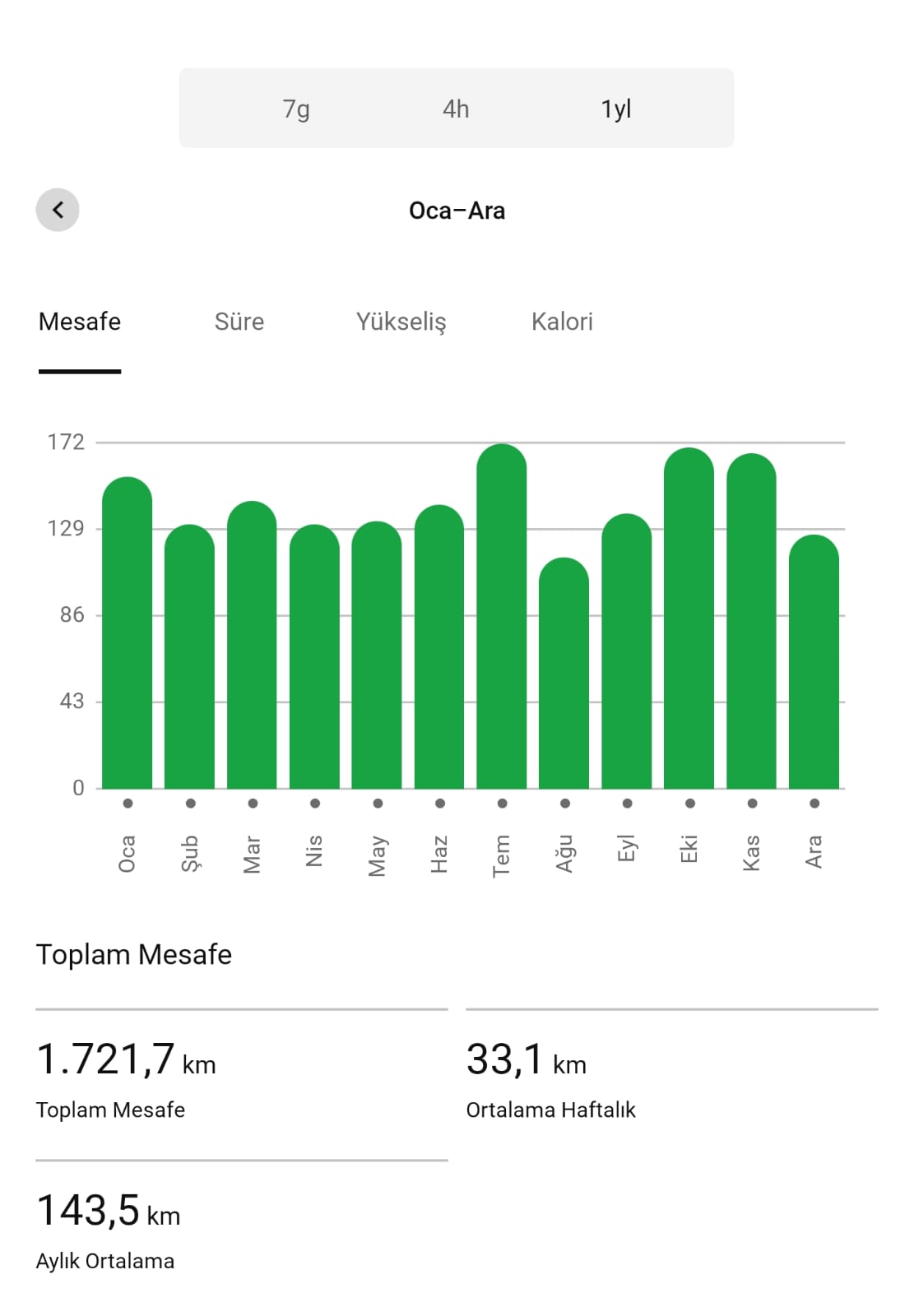 1815 km. ile kapatacağım 2024 yılını. 2025 için hedef 2200 km. Yaz aylarında sıcak ile mücadeleyi kazanırsam hedefe varacağım umarım…