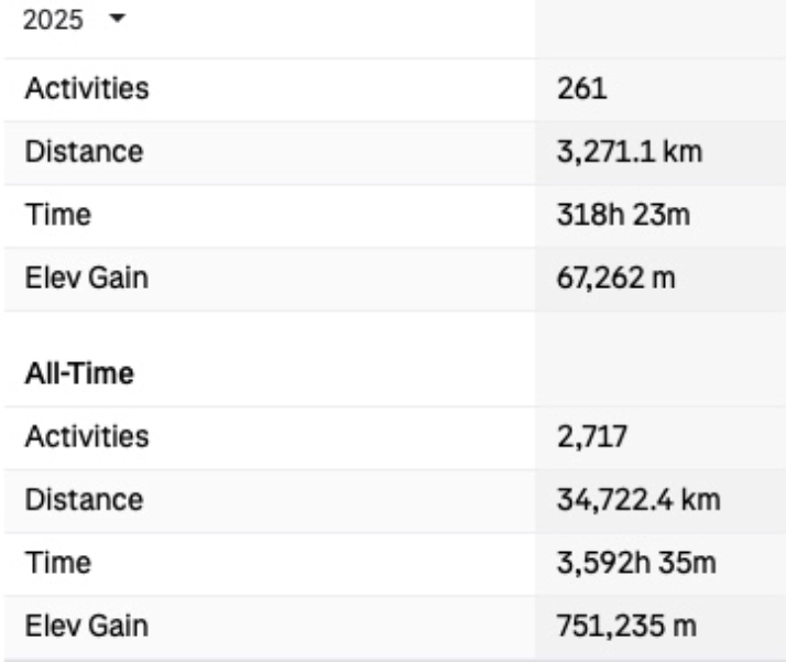 Zaten koşuyoruz diye strava paralı üyeliğine geçmiştim. Ancak bu sene istatistikleri göremeyince hafif bir araştırma yaptım. Strava uygulamasının telefonda güncellenmesi gerekiyormuş . Bir türlü istatistikleri göremedim, her sene attıkları mail’e de denk gelemedim. iOS güncelllwmsine takıldım. Galiba 2025 yılında toplam 1500 km koşmuşum. Yani hayaller Paris gerçekler Angara bağları oldu, (kapitalizmin gözü kör olsun, ama direneceğim telefonu değiştirmeyeceğim)