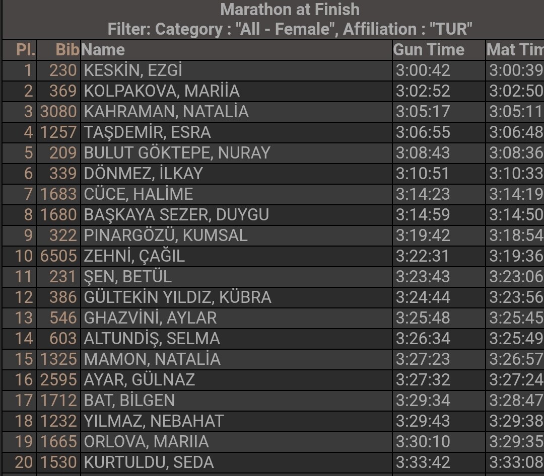 Ben bu konunun muhatabının ibb olmadığını söyledim. Hala da aynı fikirdeyim. O listede problem yaratan iki kadın koşucu var: Mariia Kolpakova ve Natalia Kahraman. Konunun muhatabı bence iç işleri bakanlığı. Yazın cimere bu kişilerin Türkiye Cumhuriyeti Vatandaşlığı var mı diye konu çözüme kavuşur. T.C. vatandaşlıkları yoksa o zaman organizasyon ve İbb hatalıdır.