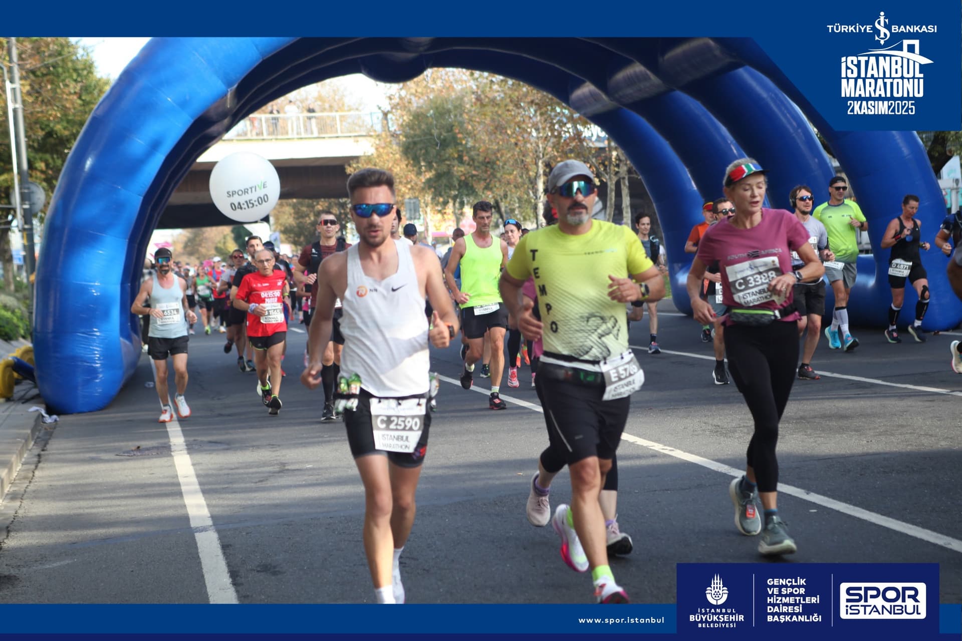 Merhaba, bu sene 3. katılışımdı. Öncekiler sadece katılmış olmak için katıldığım, antrenman veya hazırlık yapmadan ( diğer hedeflere (triatlon) yönelik antrenman yaptığım için) katıldığım denemelerdi ve hedef sürem yoktu. Bu sene ilk defa 4-5 ay öncesinden odaklanarak hazırlandığım ve 4 saat altı hedef koyduğum bir yarıştı. Eski sürelerimden dolayı E kapısında çıkınca köprü de hedef balonu (04:00:00 Pace) yakalama çalışmaları nabzımı biraz yükseltti. 10. Km de balonu yakaladım. 20 ye kadar gayet iyi giderken nabız eşiği aşmaya başlayınca tempomu düşürmek zorunda kaldım. Eğer bu tempoda gidersem muhtemelen bitiremeyeceğimi düşündüm. Havanında ısınmasıyla 30 dan sonrası gerçekten zor geçti. 04:26:00 gibi bir sürede tamamladım, hedef tutmadı ama gelişim göstermiş olmak yeterli. Eski sürem 04:55 falandı.