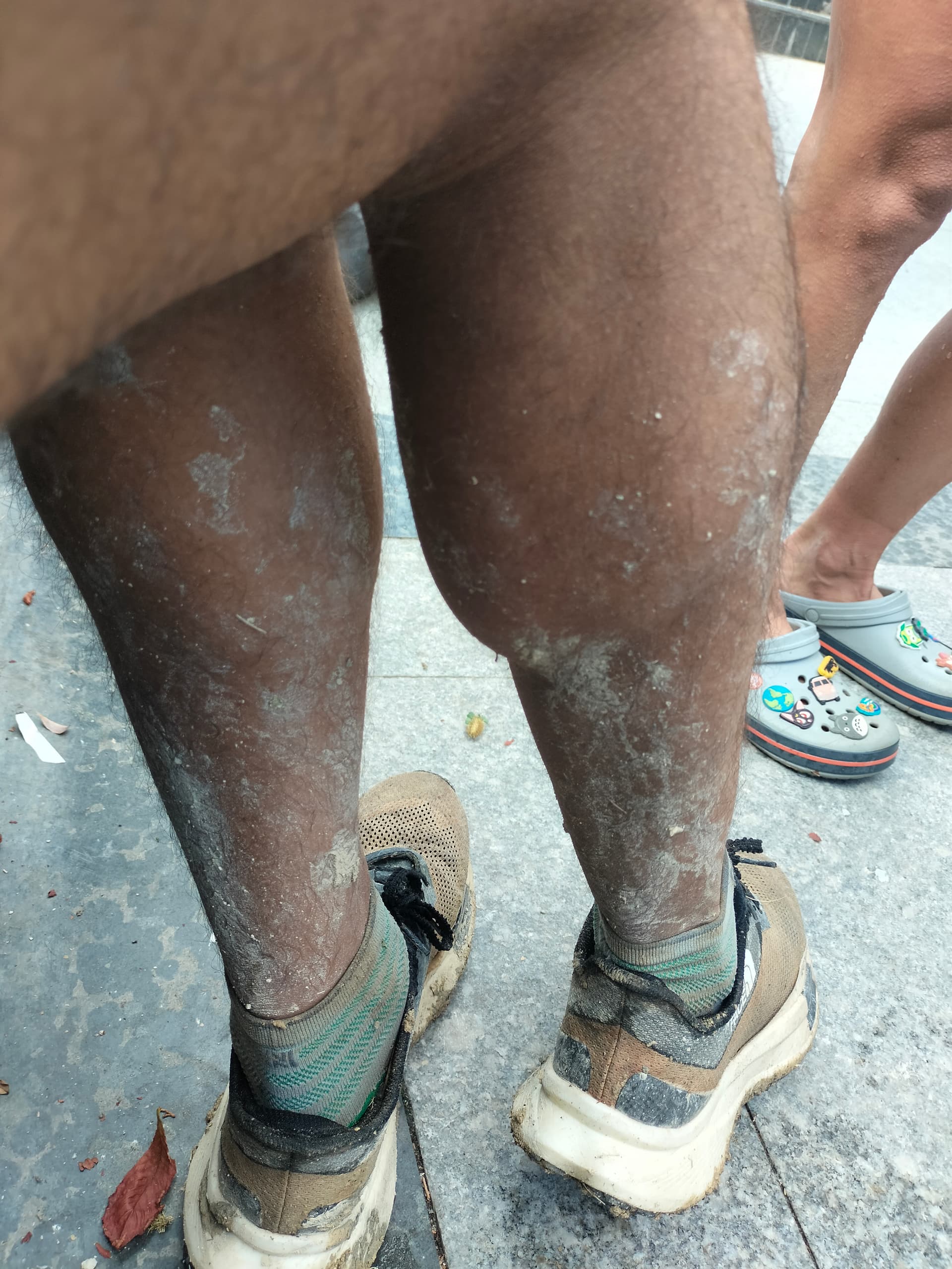 Daha sonrasında bir dere yatağına iniyoruz. Bu dere yatağının devamı bizi İnözü vadisine çıkaracak ama oraya yarışın sonunda uğrayacağız. Şimdi burada dere pek temiz değil. Suya girmemek de pek imkanlı değil. Bir süre sonra suya basmışım basmamışım hiç düşünmeden koşmaya başlıyorsunuz. yarış sonrası bacaklar bu durumda:
