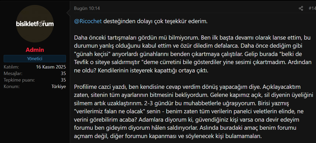 Bisikletforumun yeni hayatı sorunlu başlamış buradan okuduğum.