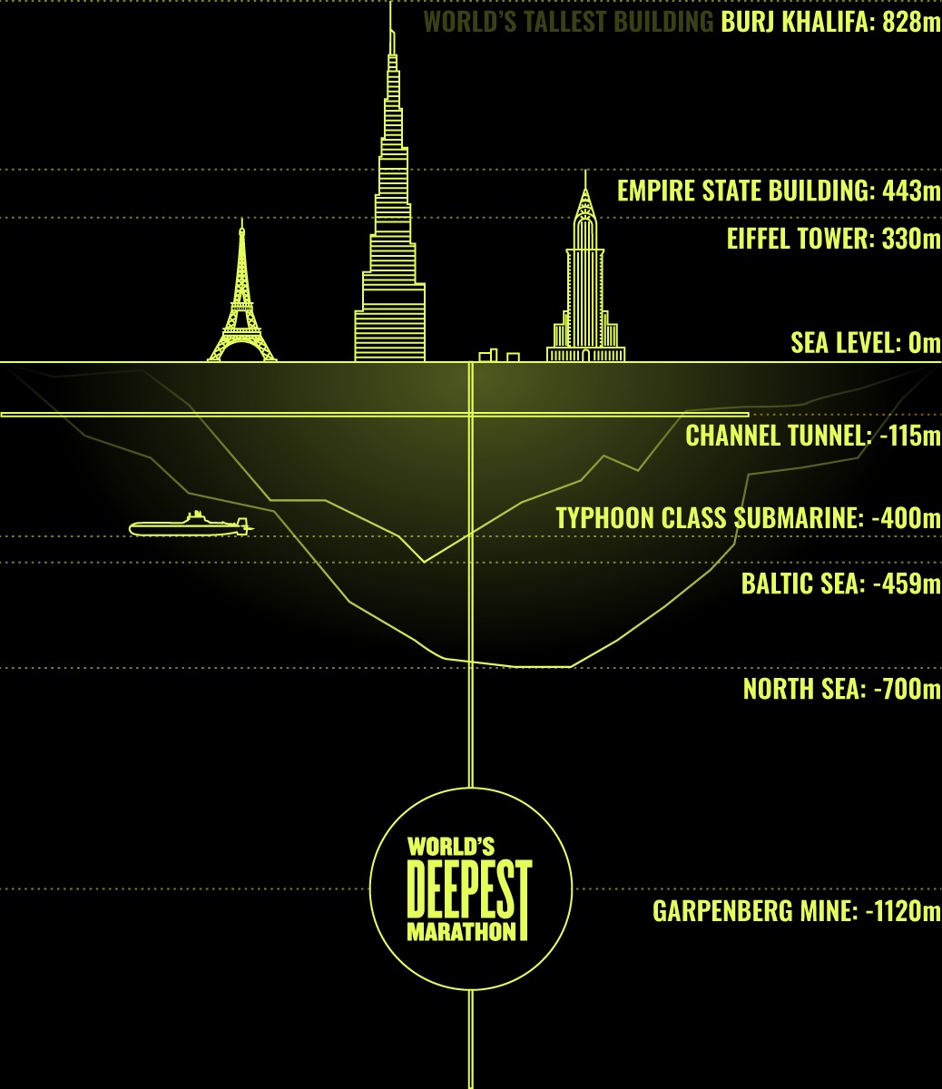 25 Ekimde deniz seviyesinin 1120m altında maraton koşulacakmış, madende.