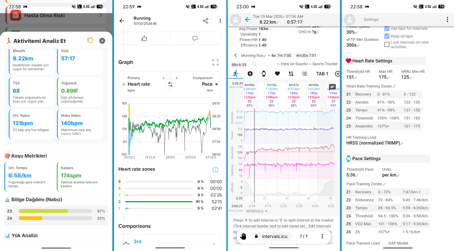 dün yaptığım koşu hemen tamamen zone 2’de olmasına rağmen, aşağıdaki gibi bölge dağılımı verdi uygulama.. Oysa hem suunto saatimde hem de intervals.icu’da aynı sınıflandırma geçerli..