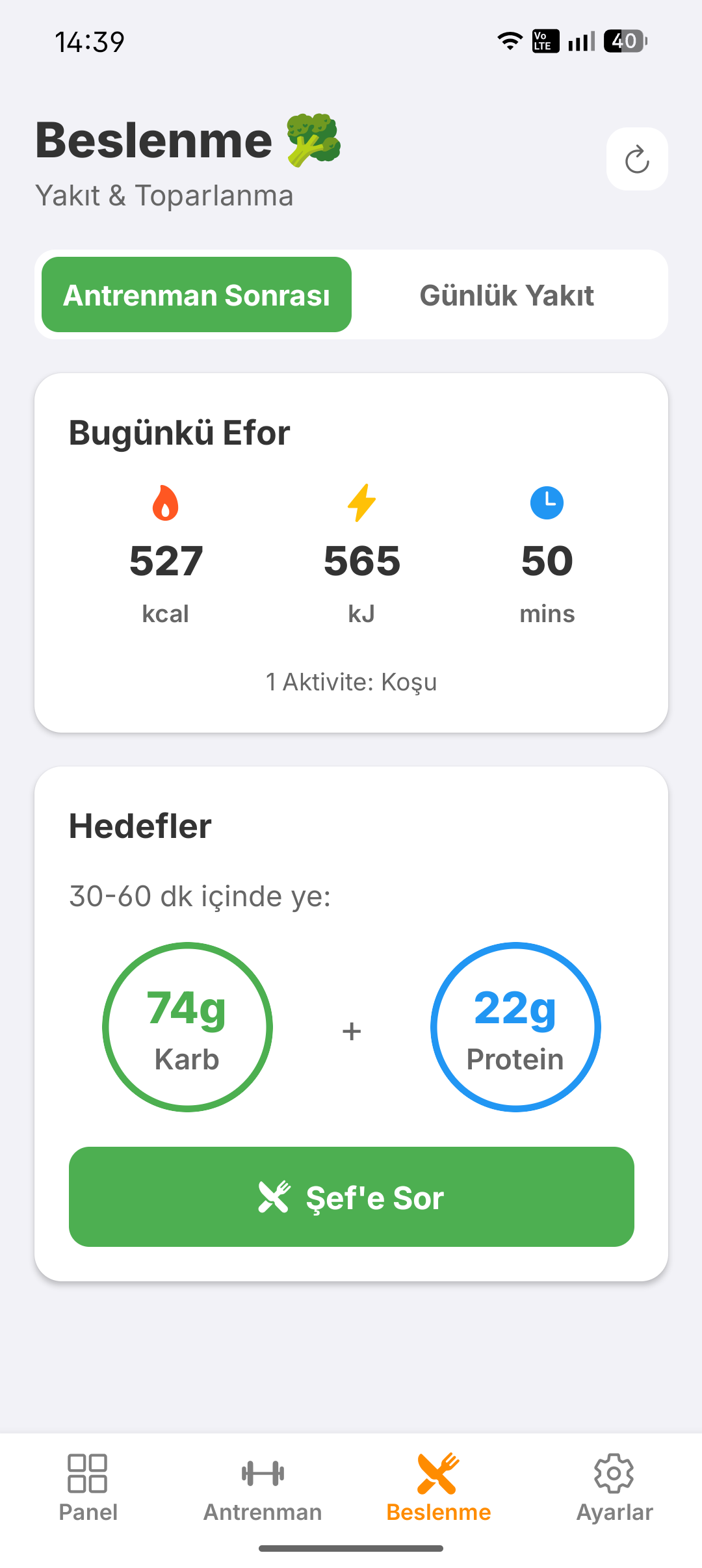 Beslenme önerilerini de çok kullanışlı buluyorum, “Antreman Sonrası” için önerilen protein, karb değerlerini, yaklaşan ve hedef pace, HR girdiğimiz bir antreman için de almak mümkün olur mu?