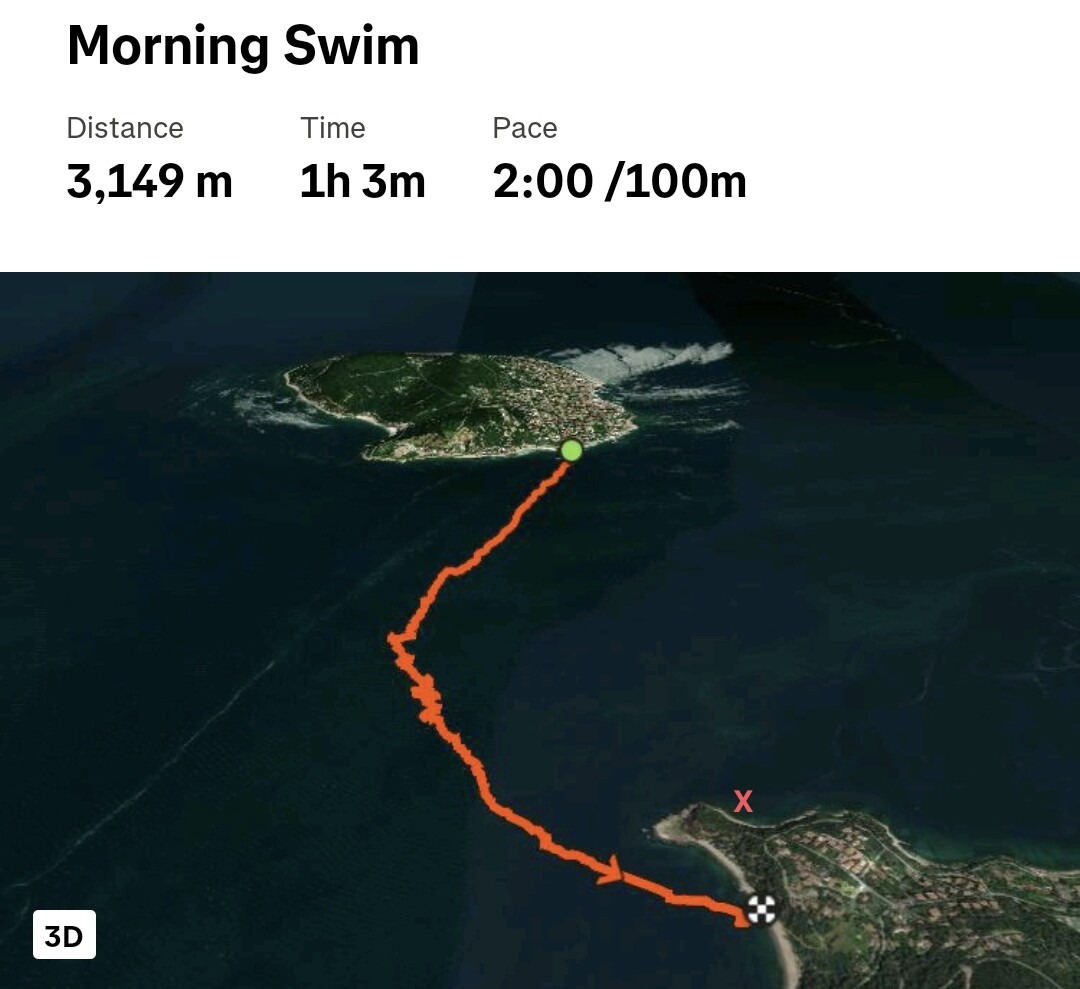 Heybeliada bence bu işin kilit noktasıdır. Arka tarafındaki Çam Limanı Koyu’na girip çıkmadan bu iş yapılırsa herşey çok daha kolay olur. 3 gün önce @mehmetbas ile yaptığımız keşif koşusunda, Alman Koyu’nun kuzeyindeki alternatif çıkış noktalarını ve adanın doğusundaki (askeriyenin alanlarına girmeden) Büyükada’ya en yakın noktada, sanki Dilburnu’nun Heybeli’deki minyatür bir kopyasıymış gibi suyun içine uzanan kaya parçasını giriş çıkış noktalarımız olarak belirledik.