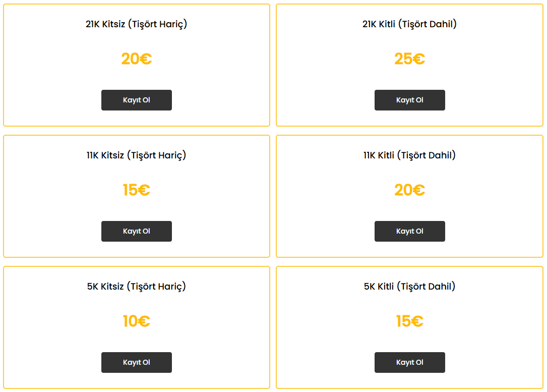 Dövizle ödenen, 21K uzunluğunda, Türkiye dışında, turistik bir bölgede ve kit verilen yarışın katılım ücreti 25 Euro(bugünkü kurla yaklaşık 920 TL).
