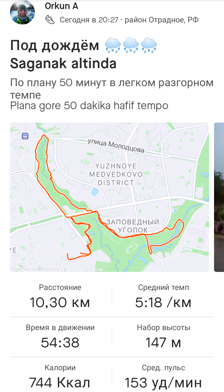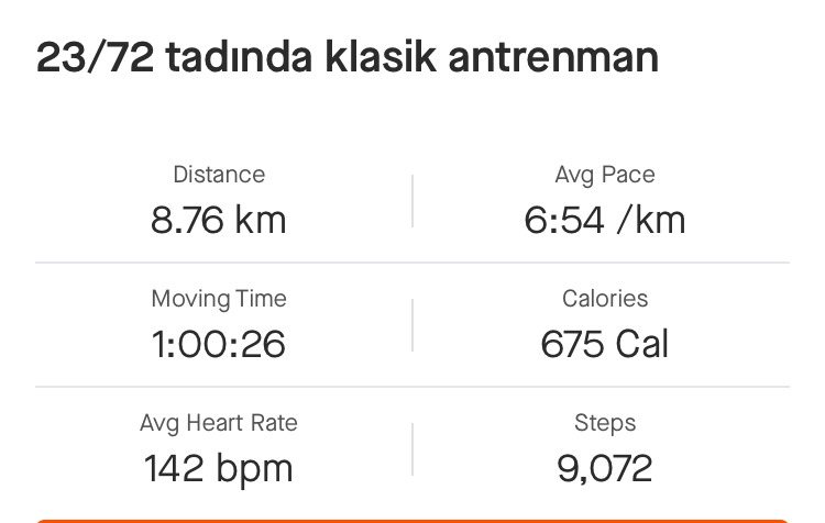 bu km ve sureyide standartlastirdim sayilir. yarin aksam aynisindan bi tane daha yapip nasil hissetigime gore antrenmanlari siklastirmayi deneyebilirim…