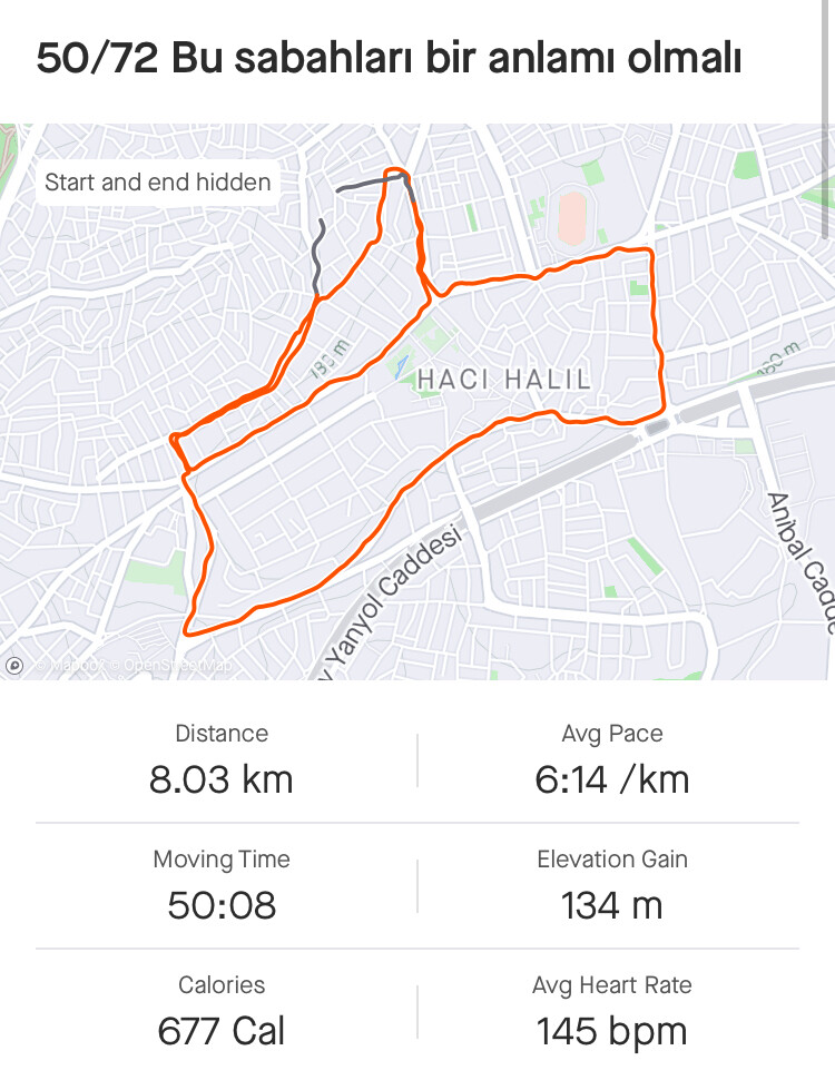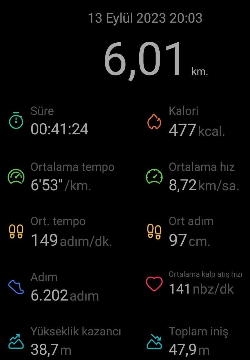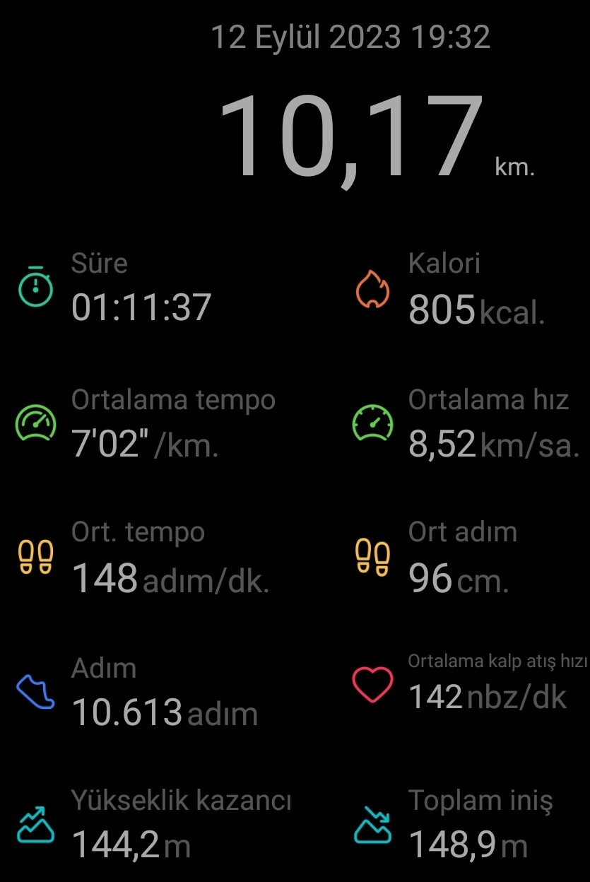 @sryz onca koşudan sonra bence tempo aynı 7dk20sn ise hr değeri de yakındır, o kısm bak ama takılma; koşubndı da bu kez farklı mesafe ölçtü durumları olabiliyor.Sal gitsin koşunun ritmine