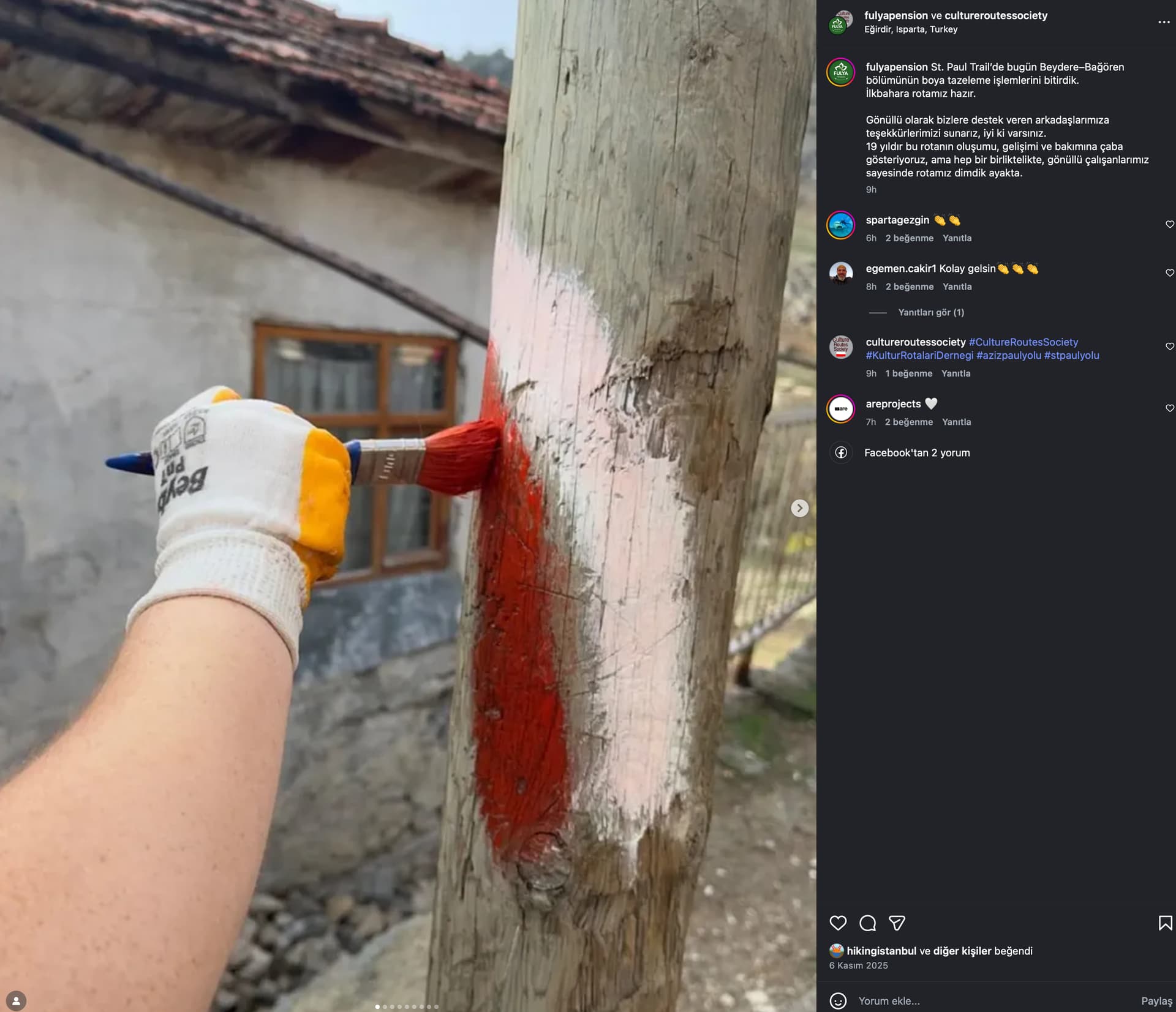 Kırmızı beyaz işaretler doğada yürüyüş yapanlar için doğru patikada olduklarını anlatan işaretlerdir. Dağlardaki babalar (üst üste dizilmiş taşlar) ile aynı görevi yaparlar.