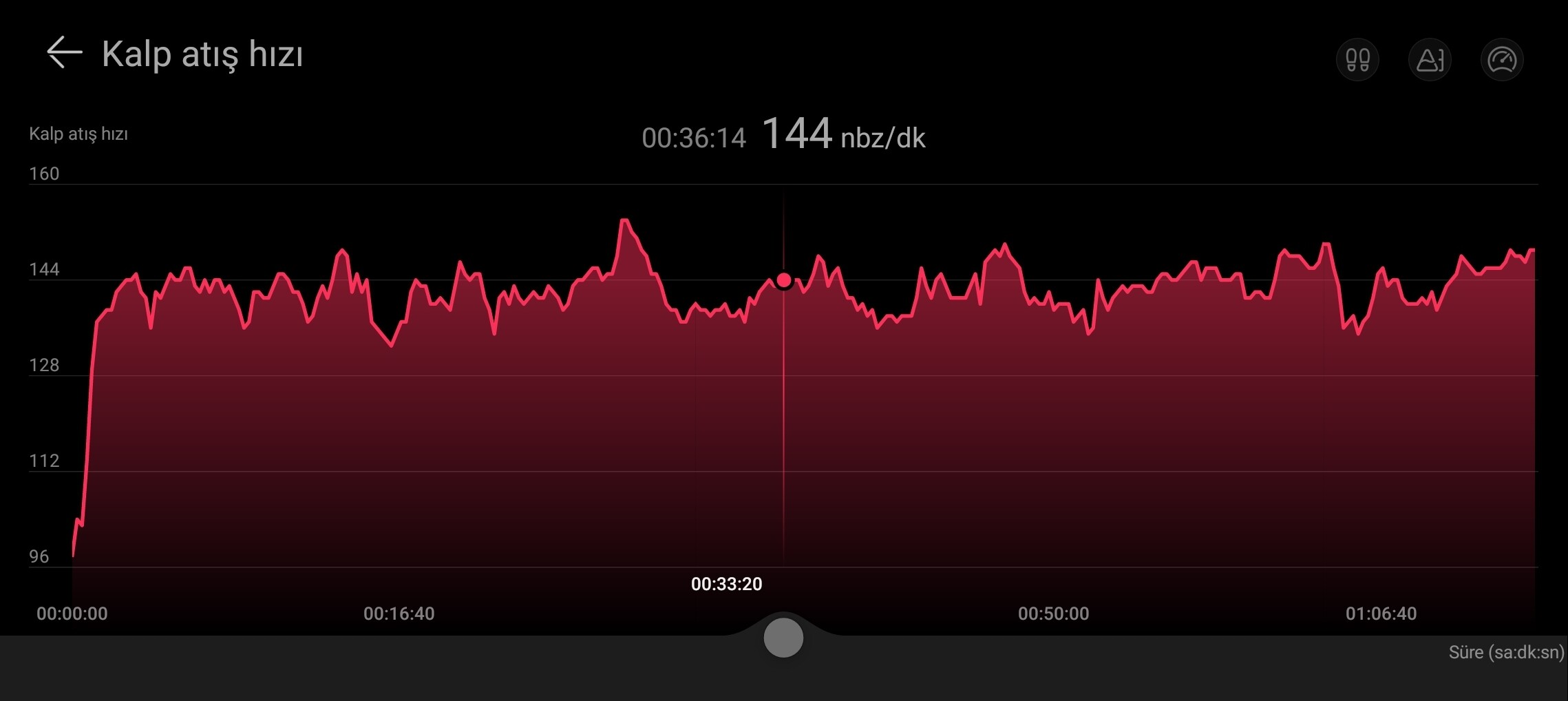 Gecen pazar gogus bandinin pili bittigi icin koldan kostum eksi 8 derecede 06.14 tempo Ile, koldan olctugu icin 180-190 lari gordum