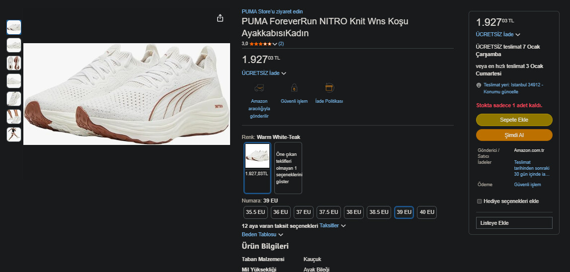 Puma fast trac nitro 3 , patika ayakkabısı Amazon tr de 2500 tl ile 3500 TL arası , fiyatlar anlık ve saatlik olarak değişiyor.