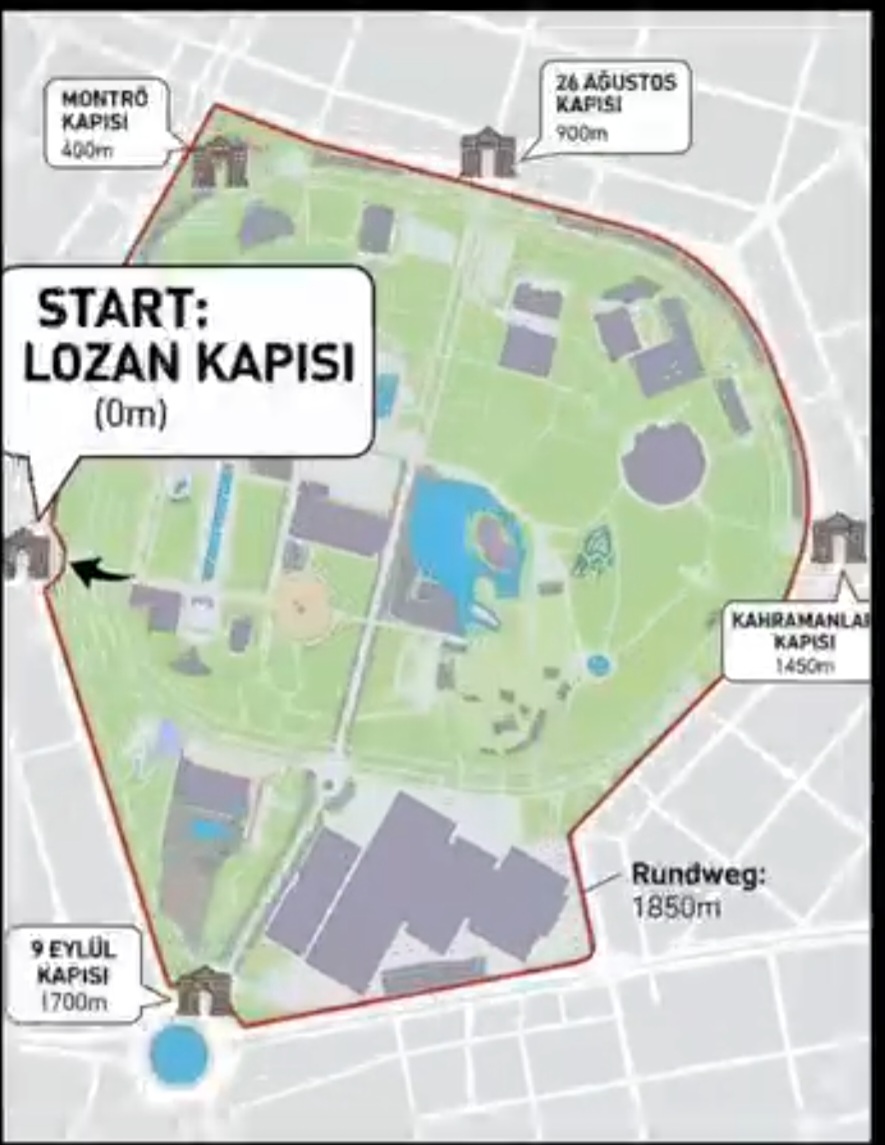Buradaki haritaya göre Kültürpark’ın dışından çizilmiş rota, oysa biz İzmirli koşuseverler hep içerideki koşu parkurunda koşarız. Dışarıdan koşulursa izlemesi zor bir koşu olur, 24 saat yarışı olsa da takip etsek keşke